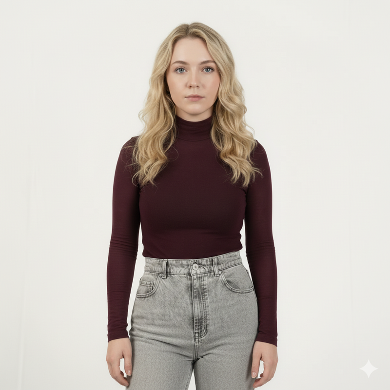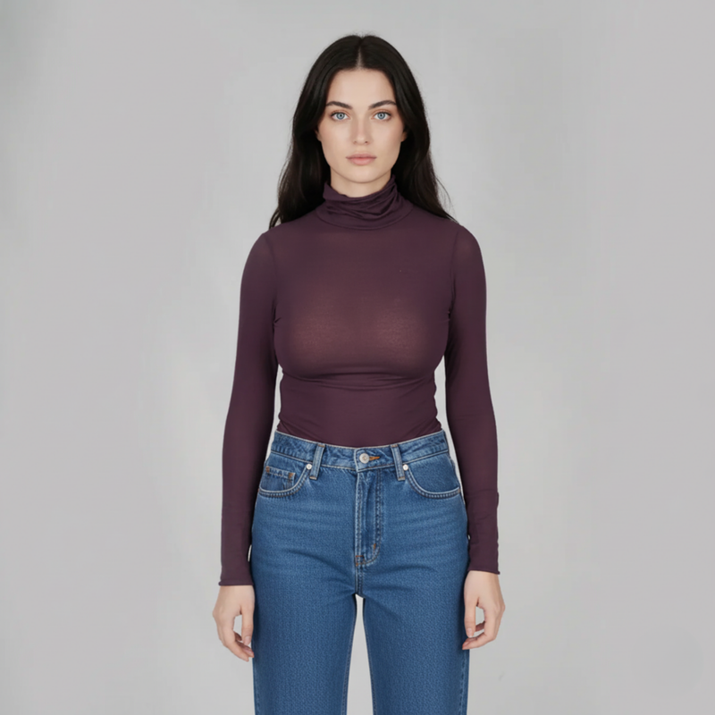 MySublyme Women's 10% Cashmere Turtleneck Base Layer - Prugna (1410)