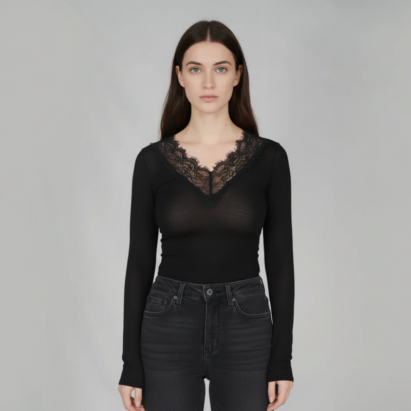 MySublyme Women's 10% Cashmere V-neck Base Layer - Black (1467)