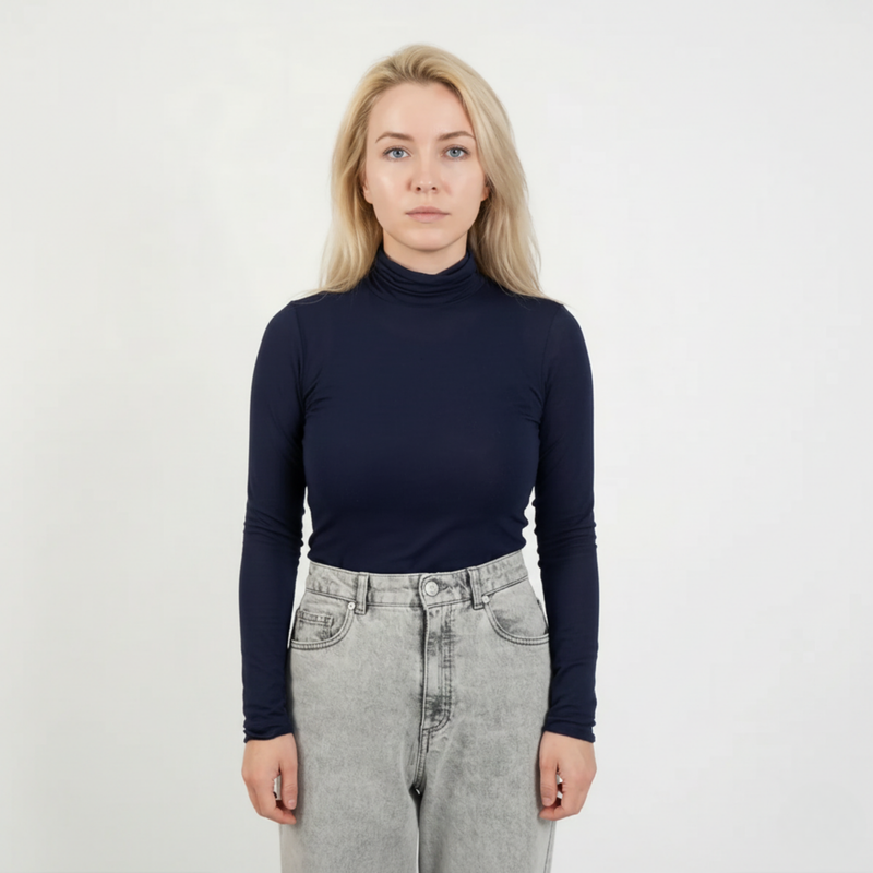 MySublyme Women's 10% Cashmere Turtleneck Base Layer - Blue (1410)