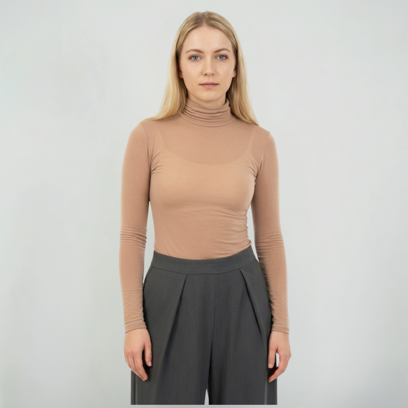 MySublyme Women's 10% Cashmere Turtleneck Base Layer - Tabacco (1410)